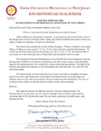 "I would like to inform you that, as scheduled, the procession of the Cross will take place this upcoming Sunday of the Cross Veneration. The procession will take place at the end of the Great Doxology. We will proceed through the north, west and south of the nave and go around the table set in the middle three times. The veneration of the Cross will take place immediately after the procession. For those not present, they can venerate the Cross at the end of the Divine Liturgy. The Cross will stay in the nave until next Saturday."