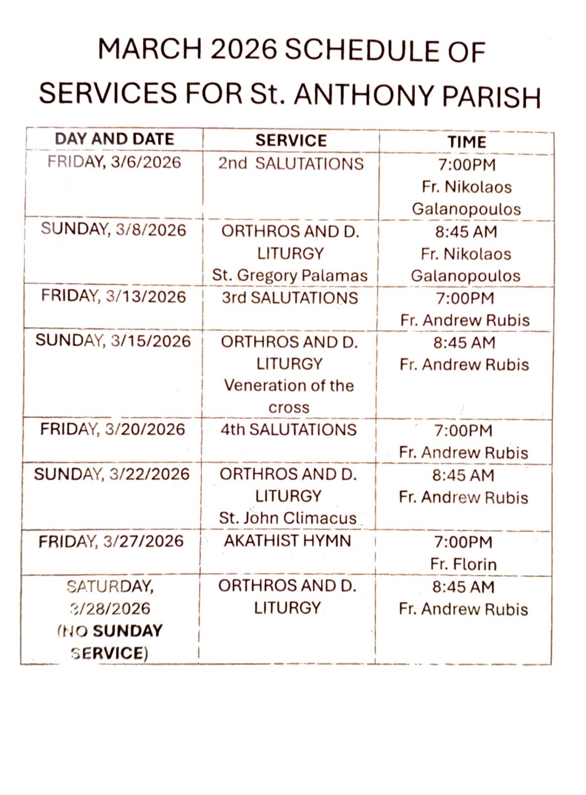 • Orthros (Matins) is celebrated at 8:30am-10:00am.
